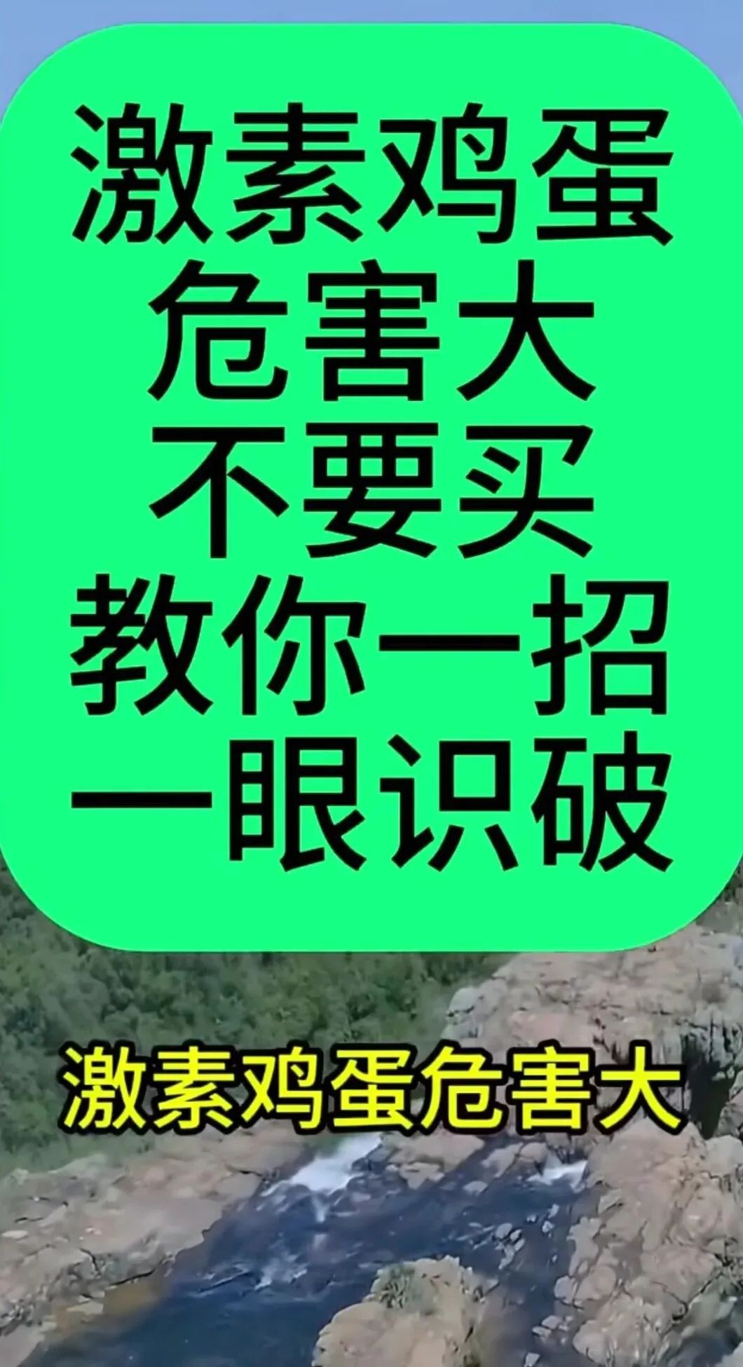 “激素鸡蛋危害大不要买,学会这几招,一眼识别激素鸡蛋……”“第一步看个头,一般激素鸡蛋会比较大,而且它的表壳比较薄,一捏就碎……”