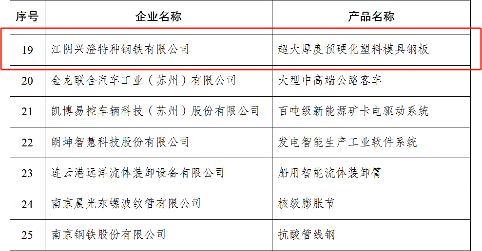 省工信厅发布的第九批国家级制造业单项冠军企业公示名单中,我市江阴兴澄特种钢铁有限公司(以下简称“兴澄特钢”)凭借“超大厚度预硬化塑料模具钢板”这一拳头产品成功入选,这是我市坚持优质企业梯次培育、推动制造业高质量发展的又一重要成果。截至目前,我市累计拥有制造业单项冠军8个,总数继续保持无锡第一。