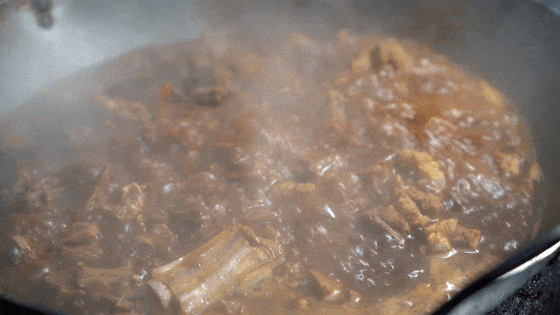 下面我们再来到徐霞客镇东宏村的芦青羊肉店,这是一家只在冬日才开张的老店。每当北风刮起,这家店就热气腾腾了起来。凌晨四点,村庄还浸在浓墨般的夜色中,店老板就点亮了灶台的灯,开始了一天忙碌的准备工作。