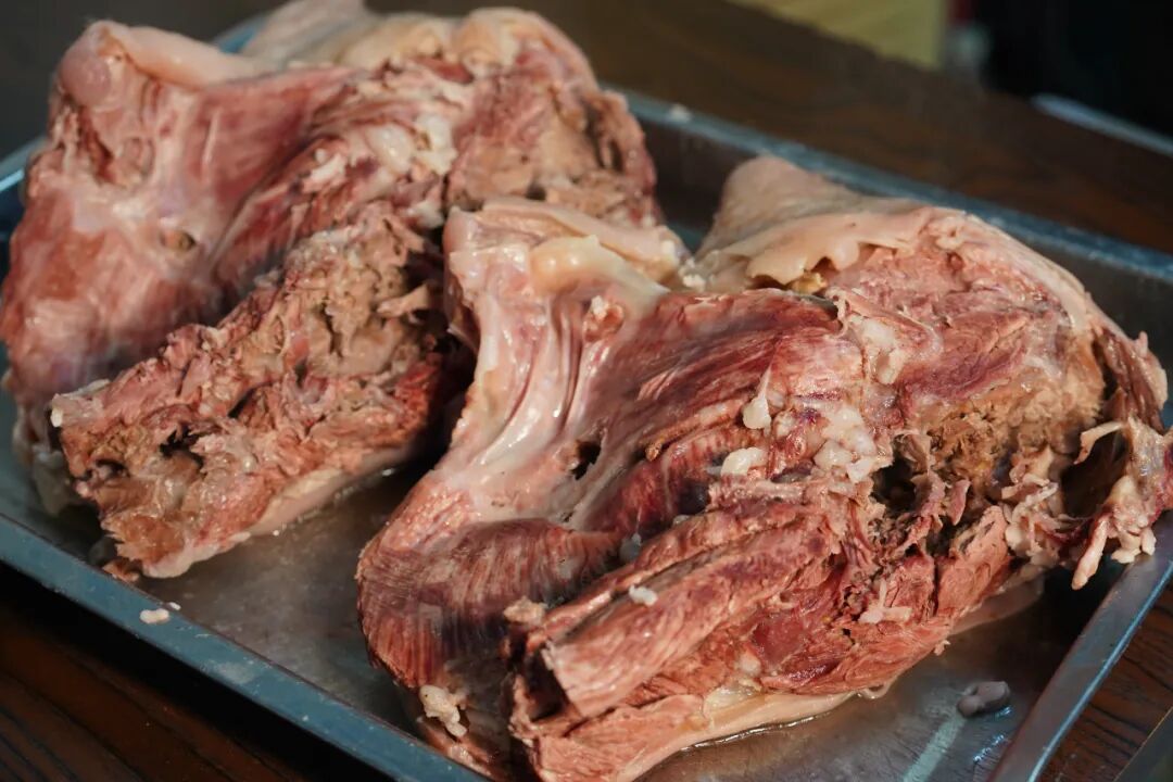 作为一种独特的羊肉加工方法,其制作过程处处透着讲究。先是将整羊投入大铁锅慢炖数小时,火候把控是关键,既要让羊肉达到“酥而不烂、韧而不柴”的状态,又得保证羊皮完整不破,这直接关系到后续“压板”的成败。待羊肉煮好,需趁热快速剔除羊骨。