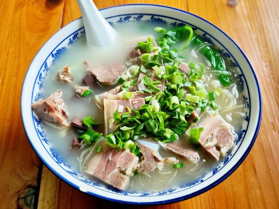 青花瓷汤碗里,奶白的汤头浮着细碎的油花,炖得酥烂的羊肉沉在碗底,撒上翠绿的葱花,热气氤氲间,寒意瞬间便被驱散了大半。一口下去,从舌尖暖到胃里,浑身都透着舒坦。