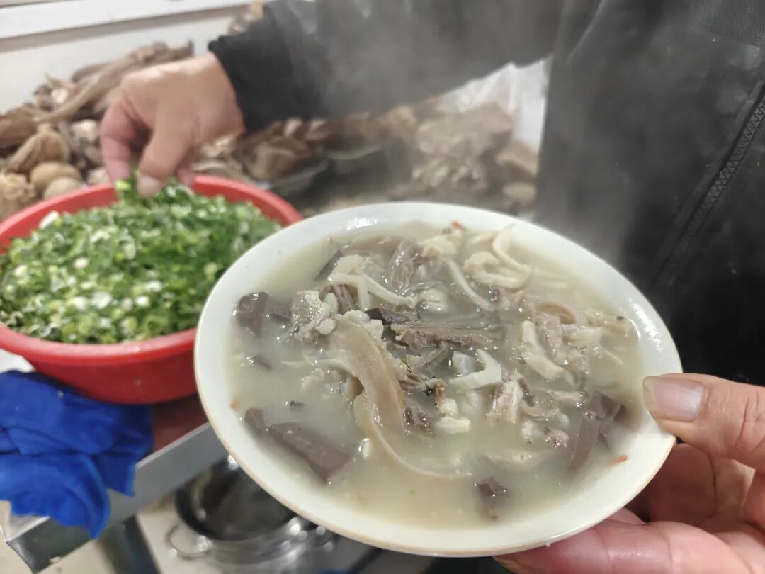 一到饭点,尤其是冬至前后,店里的凳子几乎就没有空着的。食客们在暖乎乎的店里双手捧着热汤碗,先舀一勺羊汤喝,再夹块清水羊肉,满口都是鲜。这一桌子热乎的羊肉,是老店几十年在火边守出来的手艺,不光填饱了肚子、暖了胃,也成了砂山路上大家都记得的老味道。