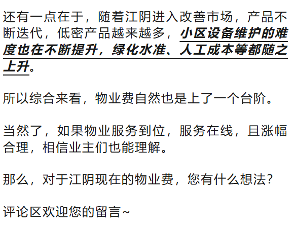 长江房产高层、小高层、洋房等业态物业费维持2.8元/㎡/月不变。