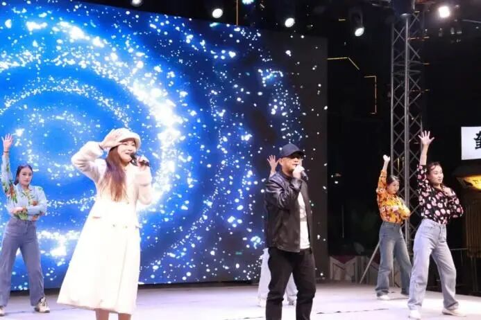 “戏剧夜”跨年派对融戏剧表演、现场音乐、艺术影像、创意打卡装置及新锐文创集市于一体,实现多艺术门类的“跨界大融合”。
