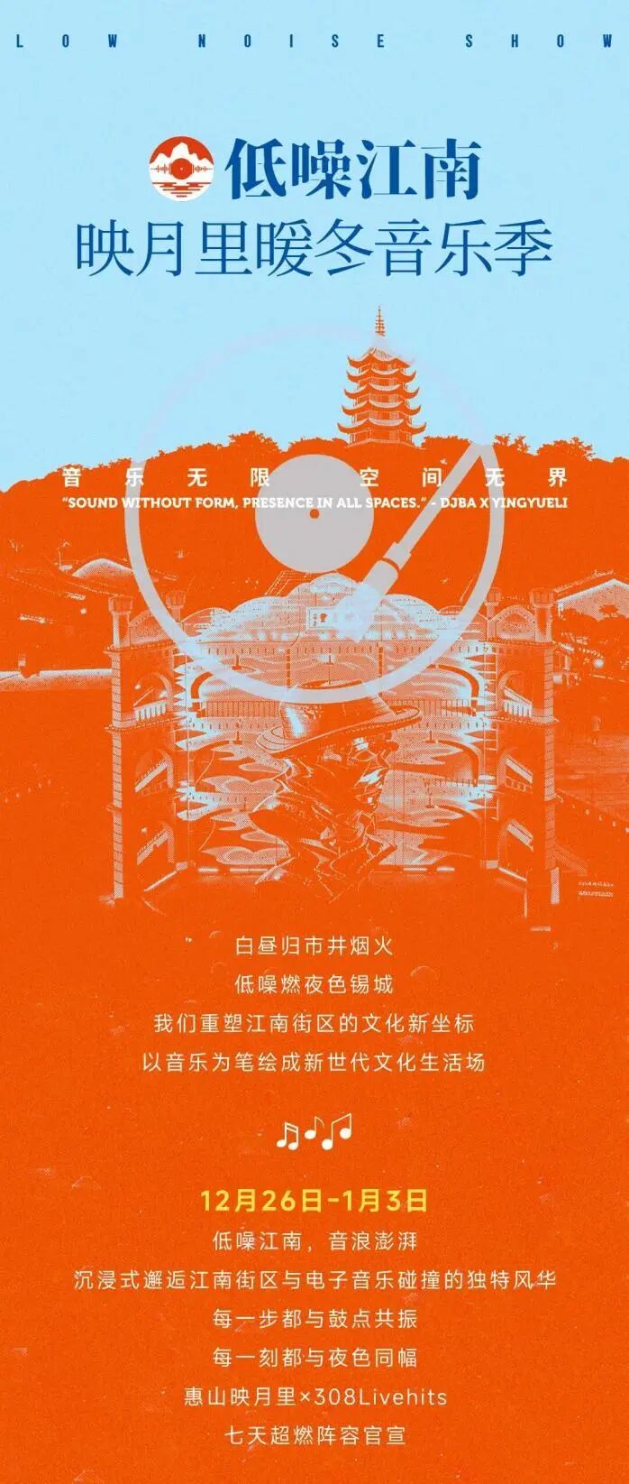 惠山映月里以“低噪江南·暖冬音乐季”为主线,将以308礼堂为核心落点,将票务与商户促销、IP文创打卡等多种形式相结合,在全街区开启系列音乐季演出。