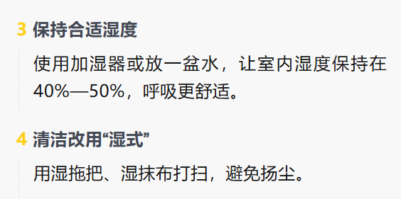 ◾ 有老人、孩子或呼吸敏感成员的家庭,提醒他们适当多喝水。