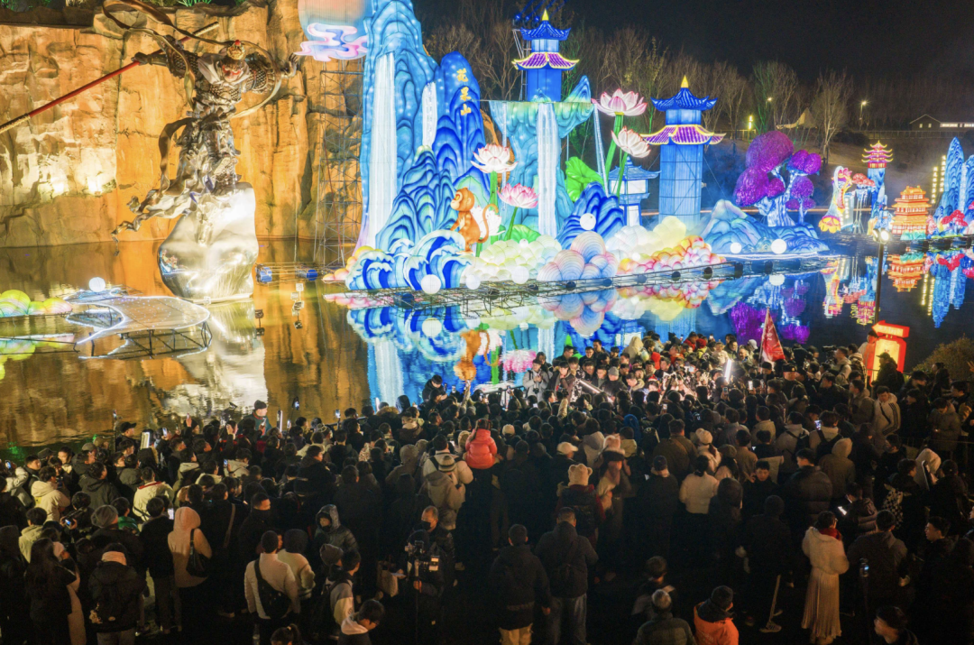 灯会以“梦回大唐”为主线打造五大核心灯组场景,开园首日便吸引了大批游客前来打卡游览。“灯组做得特别精致,沉浸式感受了一把大唐风情,年味特别浓。”来自江阴城区的游客陈女士带着家人逛完灯会和记者分享,“和传统灯会还不一样,这里的灯会有故事、有互动,逛起来特别有乐趣,随手一拍都是氛围感大片。”