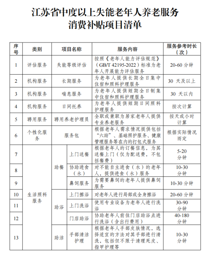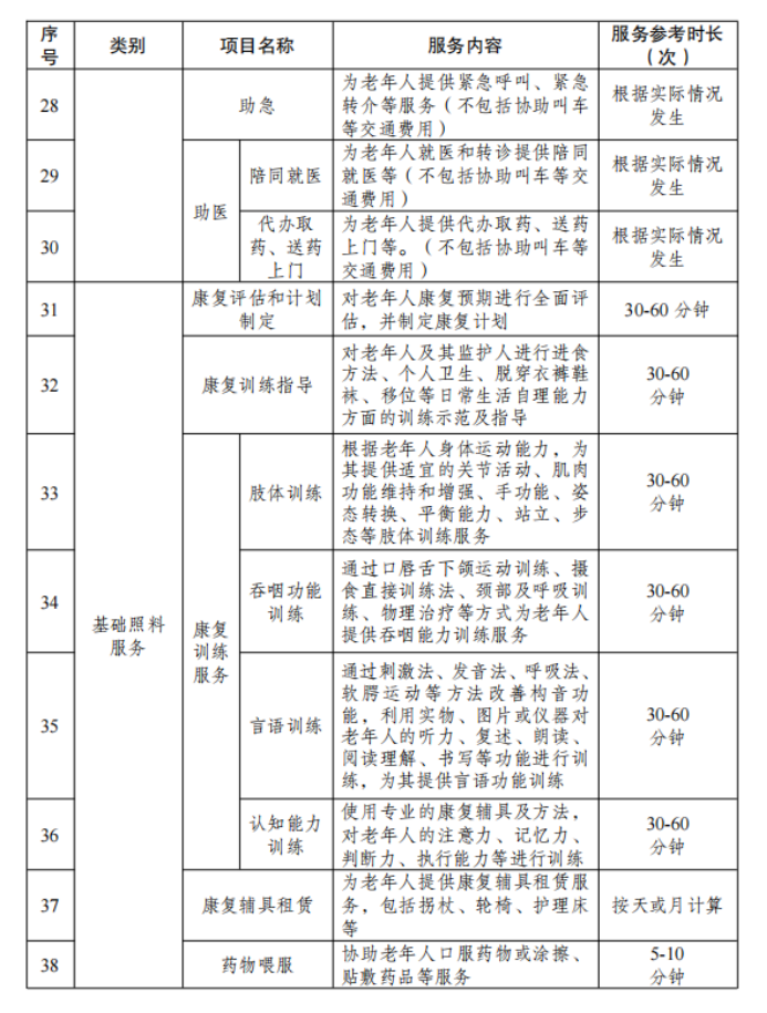 包括助餐、助浴、助洁、助行、助急、助医服务,以及康复护理、辅具租赁、健康管理等服务。