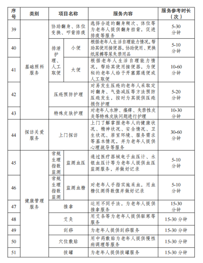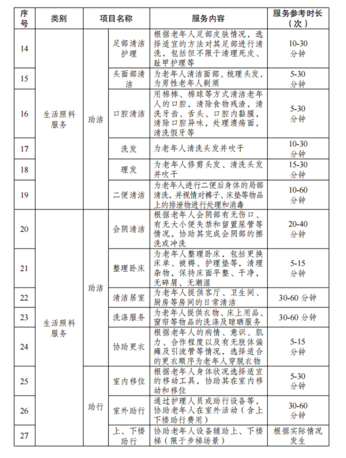 短期服务:包括“喘息服务”“日托服务”,入住机构时间在30天以内或按次计算。