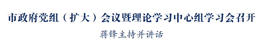 2月10日,市政府党组(扩大)会议暨理论学习中心组学习会召开,传达学习习近平总书记在中央政治局第二十四次集体学习时的重要讲话精神,研究部署全市政府系统贯彻落实工作。市政府党组书记、市长蒋锋主持会议并讲话。