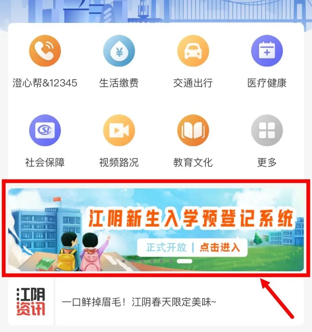 打开最江阴APP,找到“新生预登记”模块,点击进入。