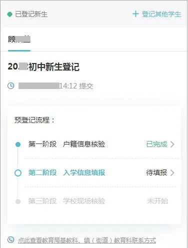 第一阶段户籍信息核验通过后,完成第二阶段的入学信息填报。