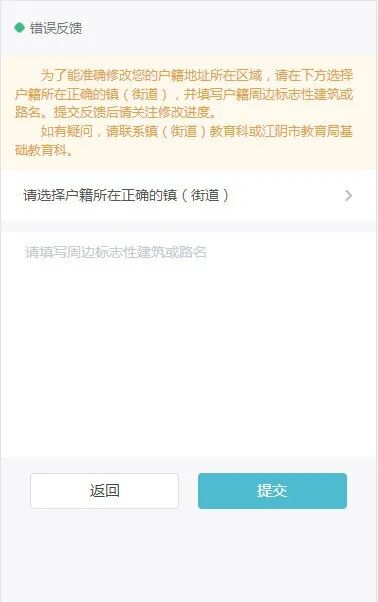 若社保缴纳镇(街道)不正确或未定位到,请点击【错误反馈】,等待后台修改社保缴纳镇(街道)后再继续填报。
