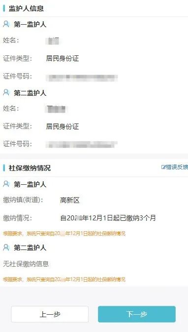 5.信息输入完整后点击【下一步】,进入监护人信息确认页面,确认无误后提交户籍信息。