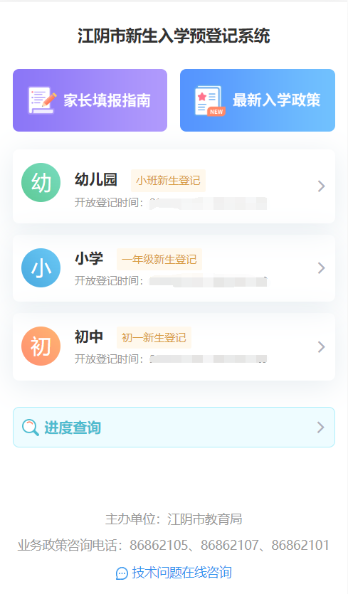 “江阴新生入学预登记系统”