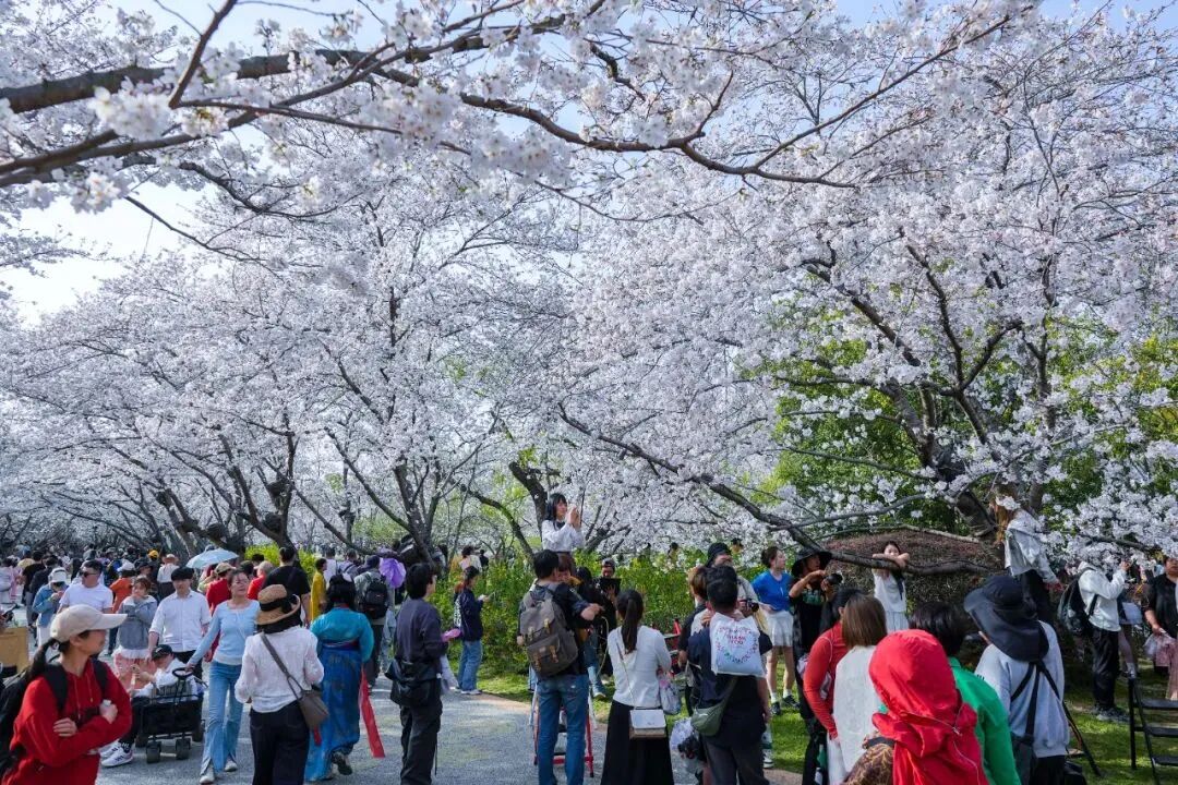 江南三月,满城繁花让无锡换上新颜,引得海内外游客纷至沓来,放眼望去,皆是“人从众”的热闹景象。拥有世界三大赏樱盛地之一美誉的鼋头渚,上周六单日人流量再破纪录。