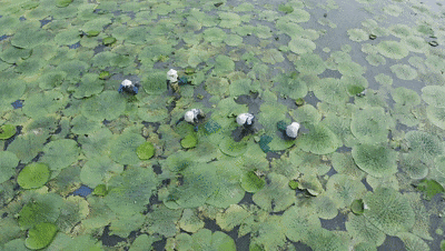 拥有十多年采摘经验的老师傅表示,芡实采摘是个辛苦活:“天不亮就来,水稍微凉快点,太阳一出来,田里跟蒸笼似的。”采摘工作将从7月一直持续至10月。
