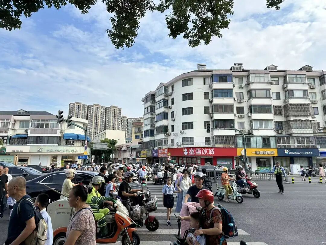 送学的电动车、自行车渐渐散开