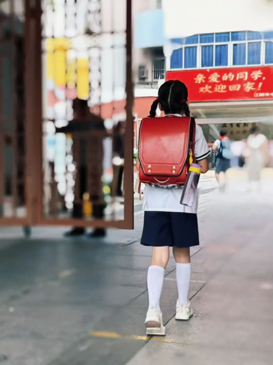 孩子已蹦跳着往校门跑