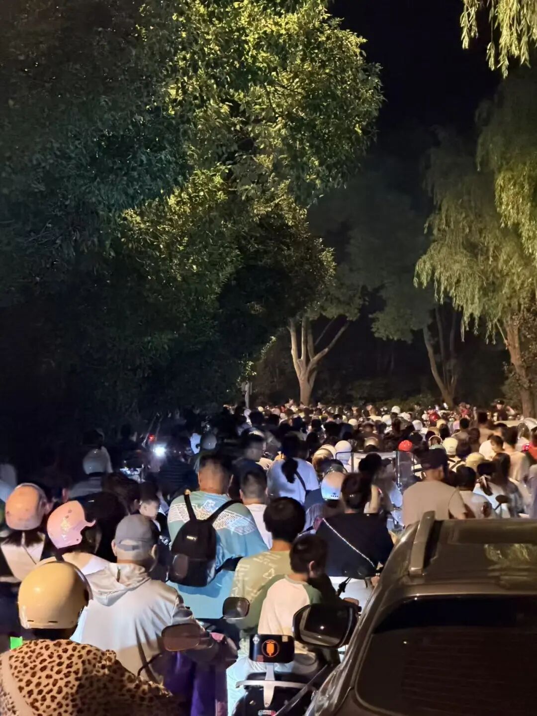 游客在锦园路等候观看烟花、排队疏散