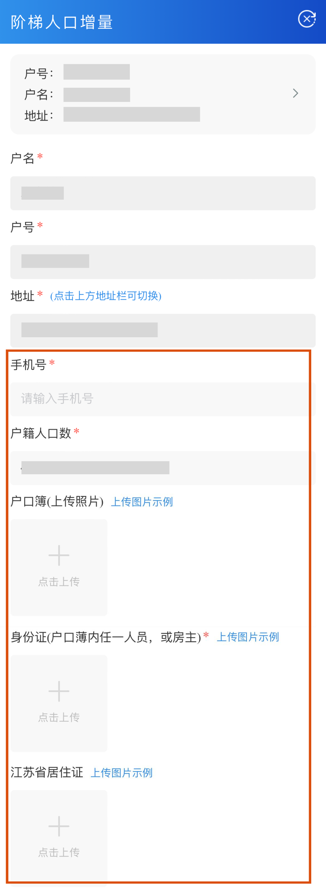 登录微信【掌上营业厅】-【阶梯人口增量】,然后按照提示上传相关资料。02属地江南水务营业网点申请