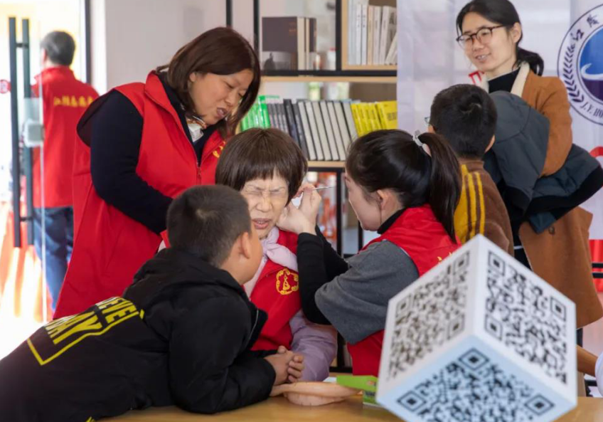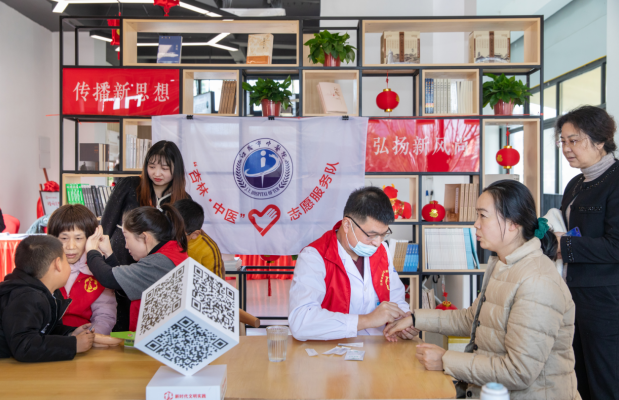 大年初五学习驿站内人流络绎不绝,“杏林·中医”志愿服务队为大家讲解中医养生常识并在现场进行义诊。