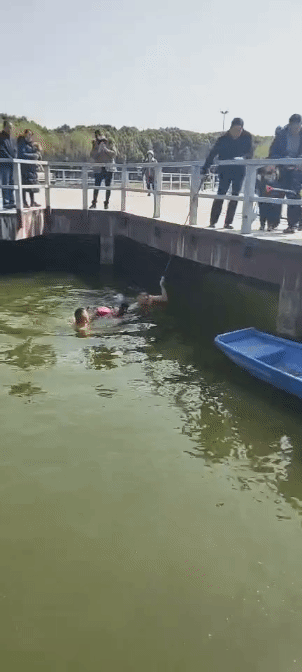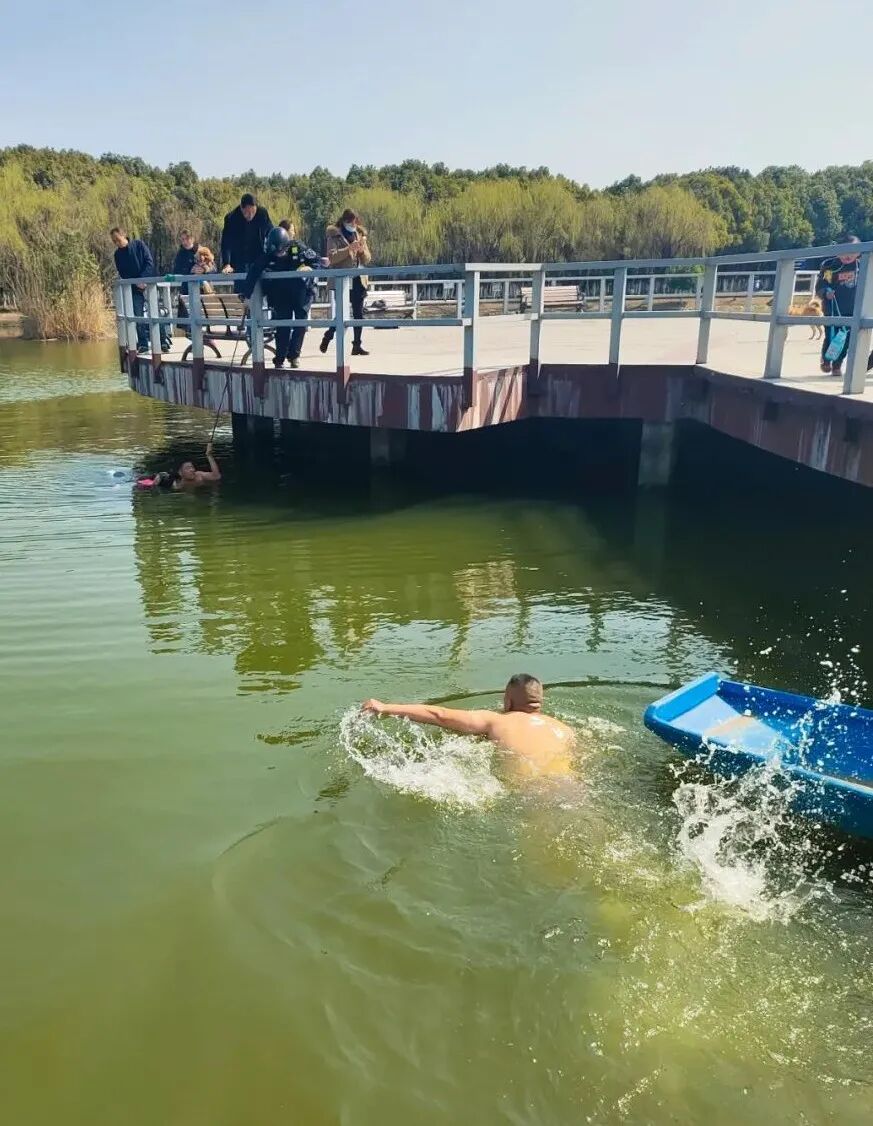此时,正在附近带队巡逻的申港派出所联防队队长夏晓勇也接到报警赶到了现场,他立刻跳入湖中向着何锋游了过去。