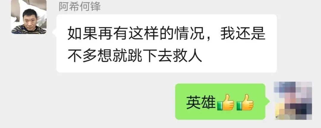 何锋说,当时的情况如果他晚两分钟下水,人就沉下去了,“根本来不及想东想西,下意识就想着救人!”
