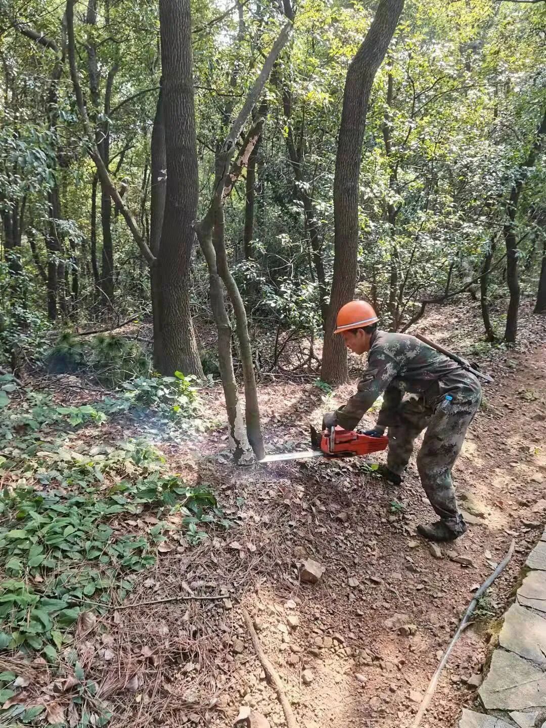 为了预防森林火灾,目前,施工人员正在加紧作业,对鹅鼻嘴公园200多亩的林区开展过熟林木砍伐及枯死树、杂草清理工作。