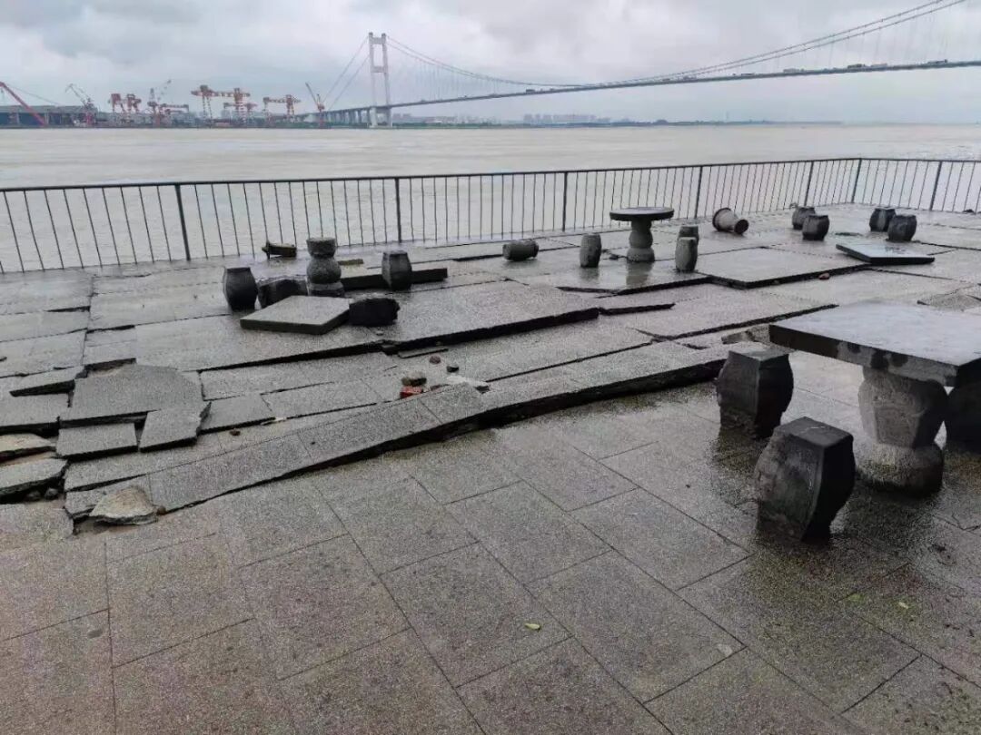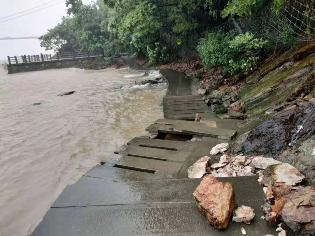 之前因受强台风“烟花”影响,长江大潮猛烈冲击公园岸边设施,造成江边栈道、栏杆、座椅等设施严重损毁,部分山体受江潮冲击及树木倒伏、水土流失等影响,出现崩裂、垮塌、落石等现象,带来一定安全隐患。