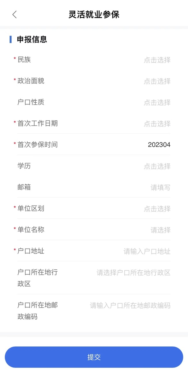(2)进入办理页面填写信息后提交,即可办理灵活就业参保。