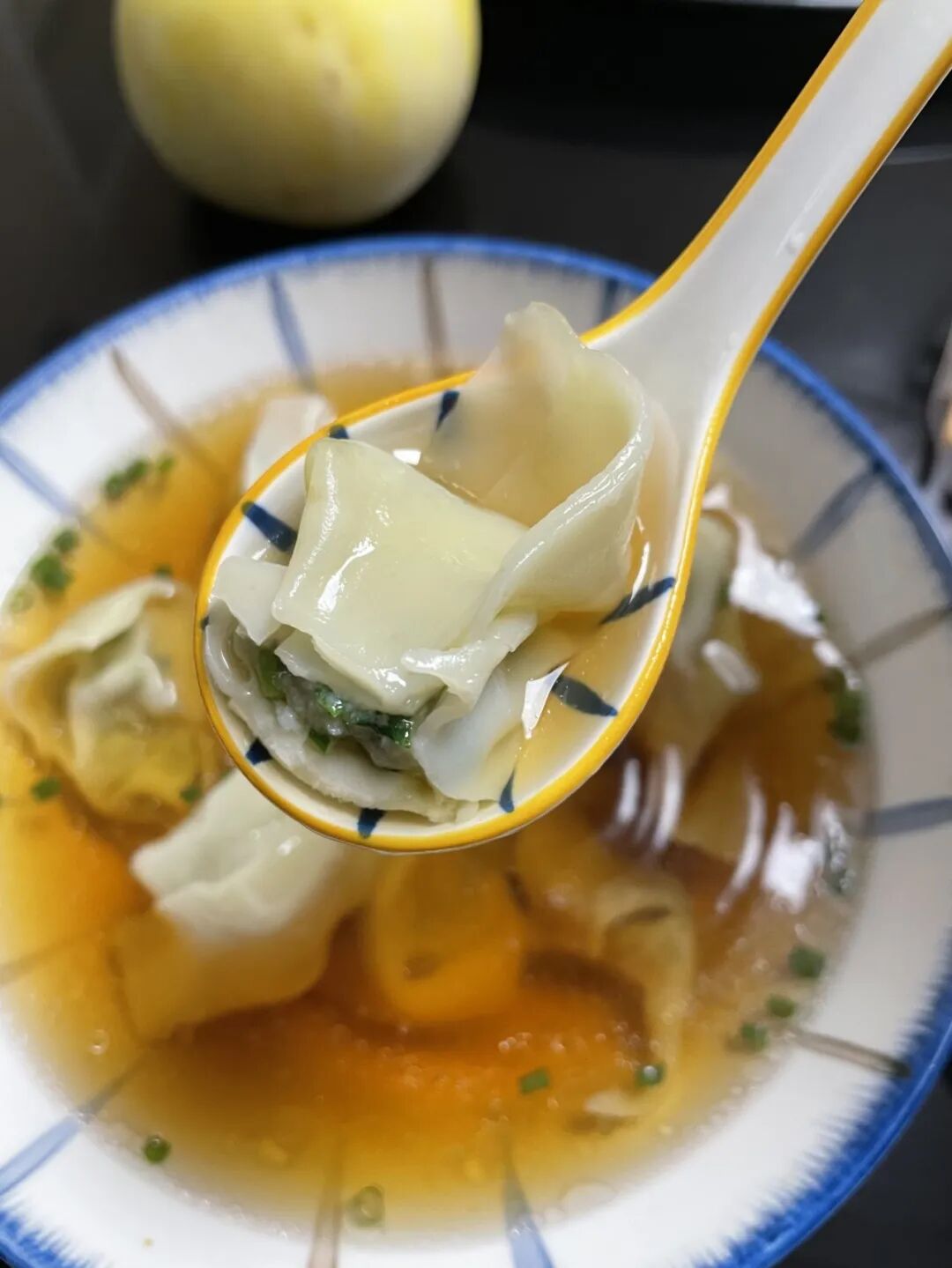 有一说一,送的馄饨皮水平真不错,加了鸡蛋清,细滑有韧性,不易煮破,煮完滑而不黏。