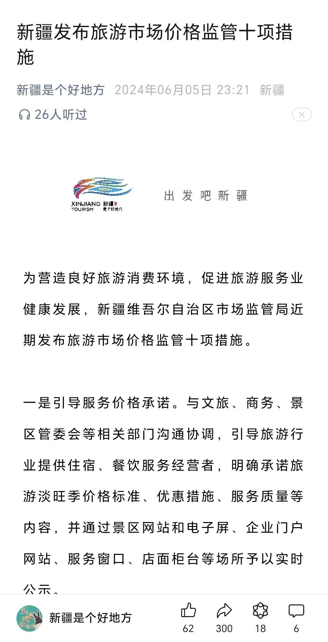 年初以来,新疆维吾尔自治区涉旅部门联合开展旅游质量服务提升年、同心护旅行动,主要聚焦游客反映强烈的突出问题,对物价、厕所、甩团三大问题进行专项整治。