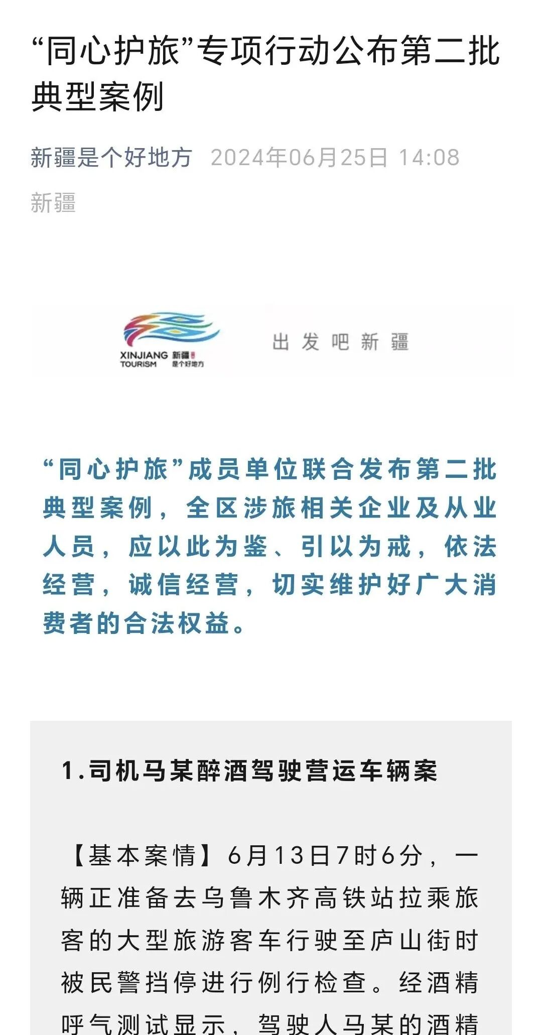 6月11日、25日,“同心护旅”成员单位先后发布第一批、第二批典型案例,以案为戒,督促全区涉旅相关企业及从业人员,依法经营,诚信经营,切实维护好广大消费者的合法权益。