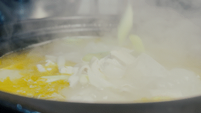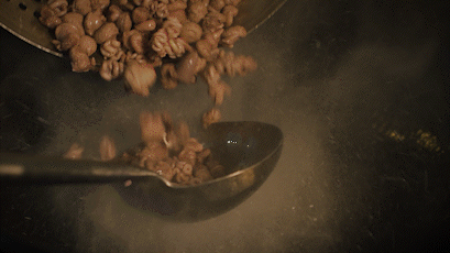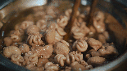 3、锅内加入冷水烧开,随后加入盐、味精等调味;