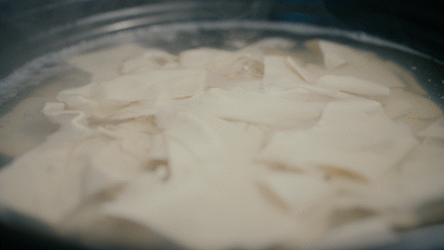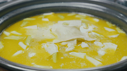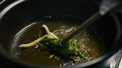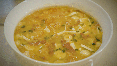 申港百叶,是用传统的盐卤点制而成的,选料精良、工艺精细、烹制考究、肥嫩细滑、风味独特,其烹饪方式多种多样,每一种都有其独特的滋味。农家百叶豆腐选择清炖的方式来烹饪,豆腐、百叶被高汤浸润得服服帖帖,自身的豆香和盐卤点出来的那特殊的百叶香与高汤交融到一起,咬一口,百叶软而不化、细腻醇香,一口气能吃两大碗。