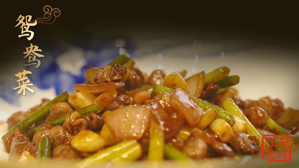 据说,旧时鸳鸯菜是难登大雅之堂的,是民间百姓的解馋之物。当时申港是有名的苗猪市场,为了不浪费食材,百姓们经过不断尝试研究,制作出了这道独有的菜肴。一般若有宾客来访,主人便会千方百计去觅得食材,精心烹制,以示主人的热情待客。后来,随着时代的变迁,鸳鸯菜经过厨师的不断改良,成为了这一带酒楼餐馆的特色招牌菜。制作后的鸳鸯菜,色泽鲜艳、脆柔相济、风味独特、营养丰富,称得上是申港的“一绝”。