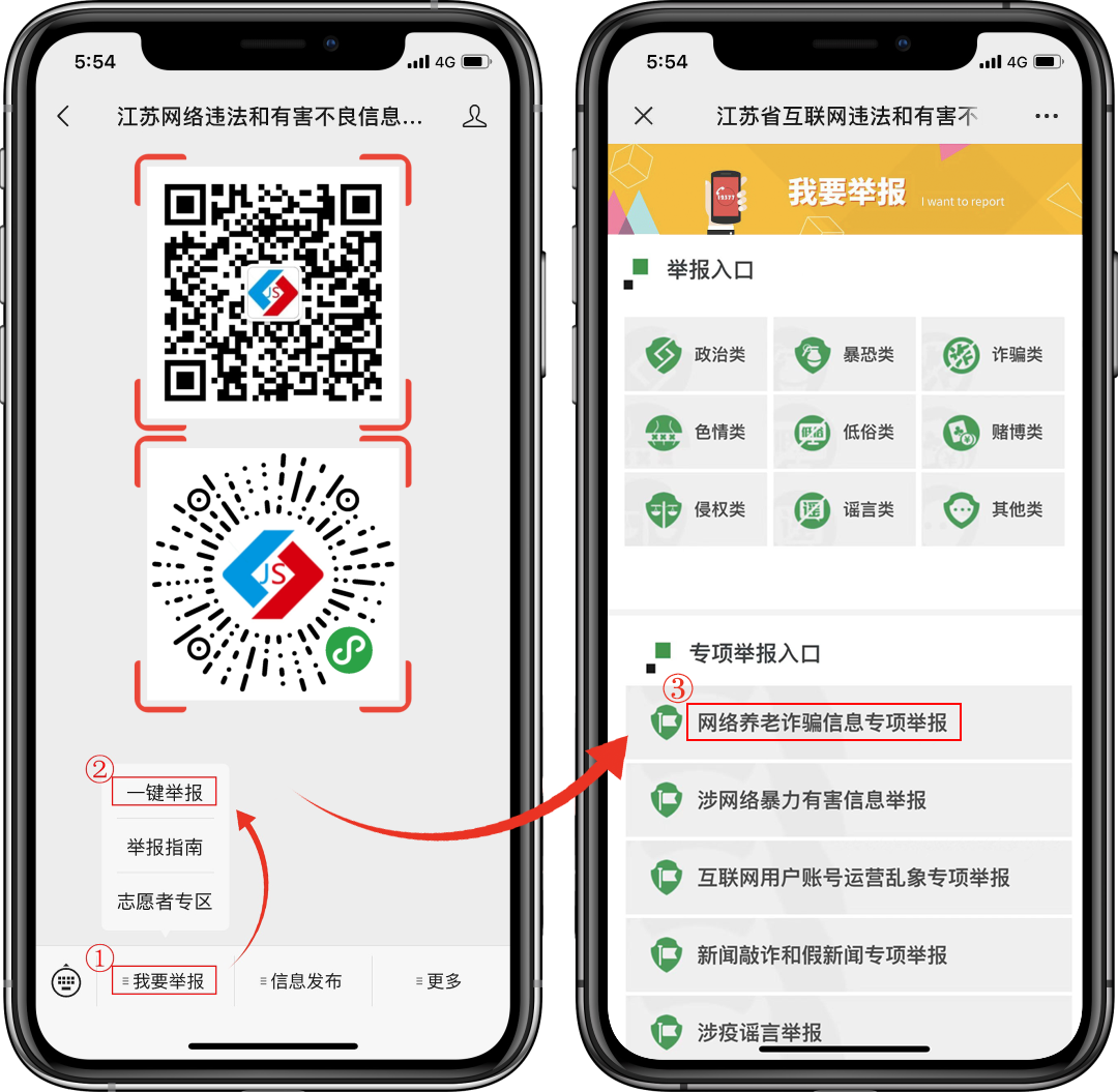 官方微信公众号及小程序:江苏网络违法和有害不良信息举报