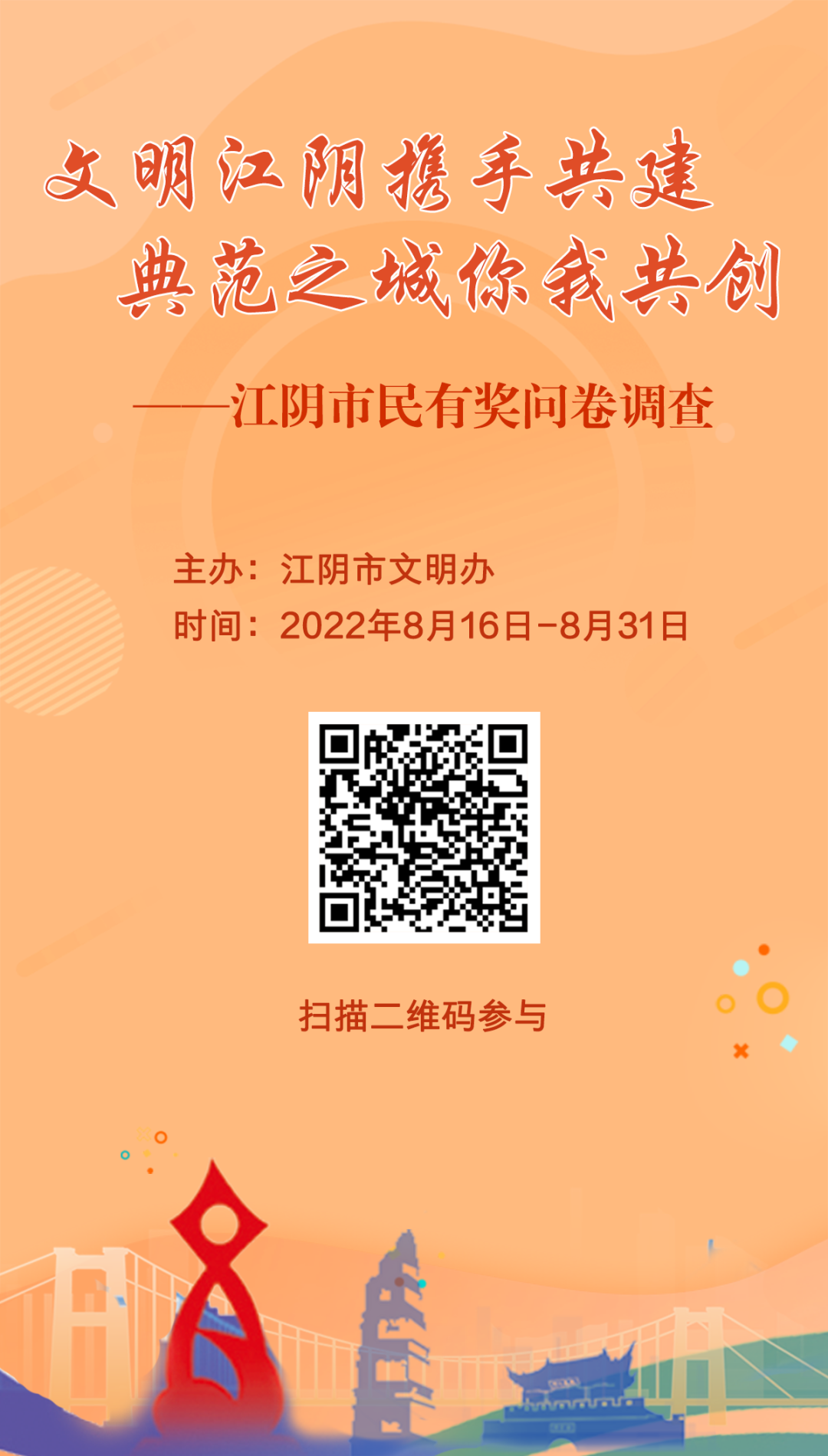 道阻且长,行则将至;行而不辍,未来可期。为进一步推动江阴从“文明高地”向“文明高峰”攀升,动员全体市民群众一起参与到“文明江阴”建设中来,即日起,市文明办将面向广大市民群众开展江阴市民有奖问卷调查,奖品换新,并新增微信现金红包!一起来做文明有礼江阴人。