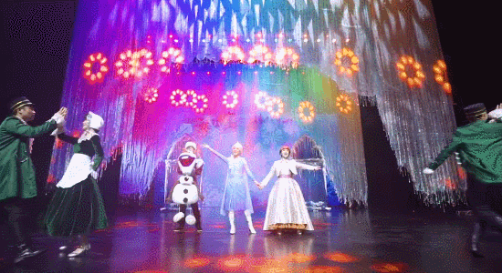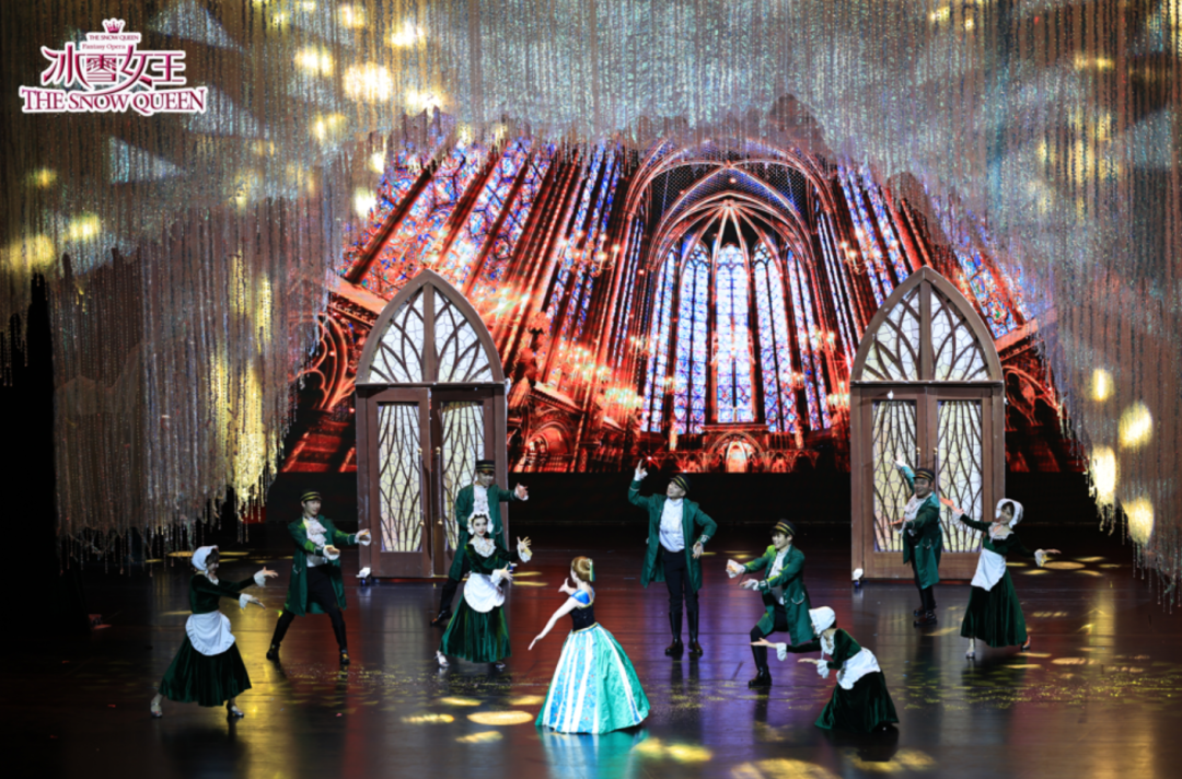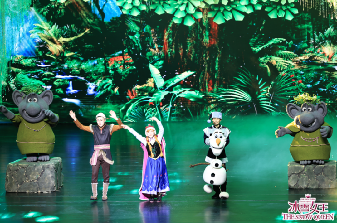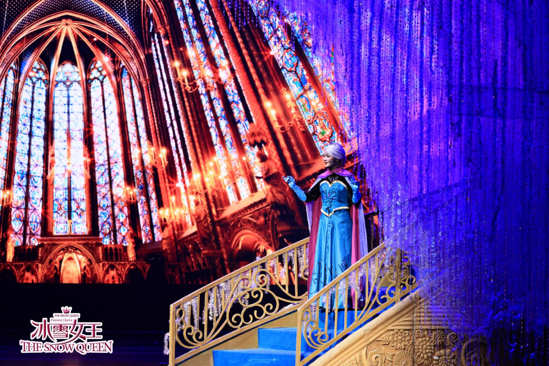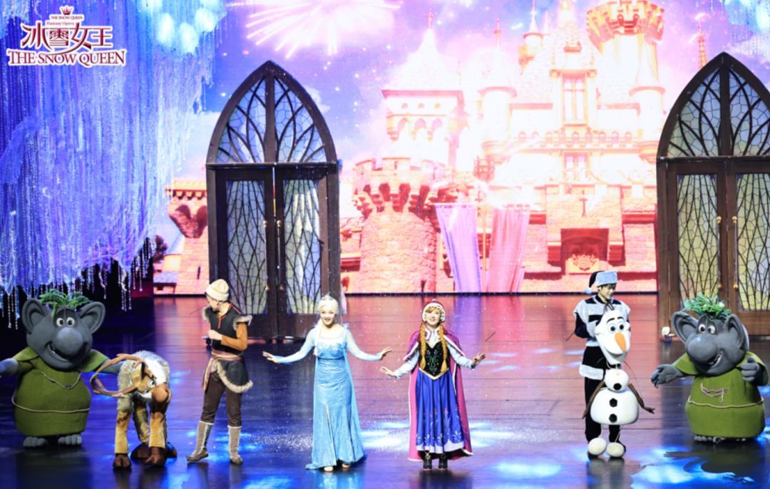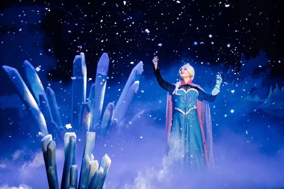 在《冰雪女王之星梦奇缘》中,就采用到了百老汇专用的舞台模式,借助声、光、电等表演技术,打破童话与现实的界限,实现了360°的全景沉浸体验。