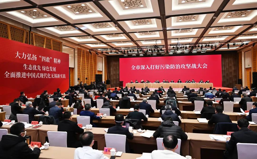 无锡市委书记杜小刚强调,要全面贯彻党的二十大精神和习近平生态文明思想,认真落实中央和省委、省政府决策部署,坚决扛起生态文明建设和生态环境保护的政治责任,昂扬“四敢”精神,深入打好污染防治攻坚战,加快推进生态环境治理现代化,踔厉奋发、勇毅前行,精心绘就中国式现代化的无锡生态画卷,为美丽江苏建设贡献无锡力量。无锡市市长赵建军作具体部署。