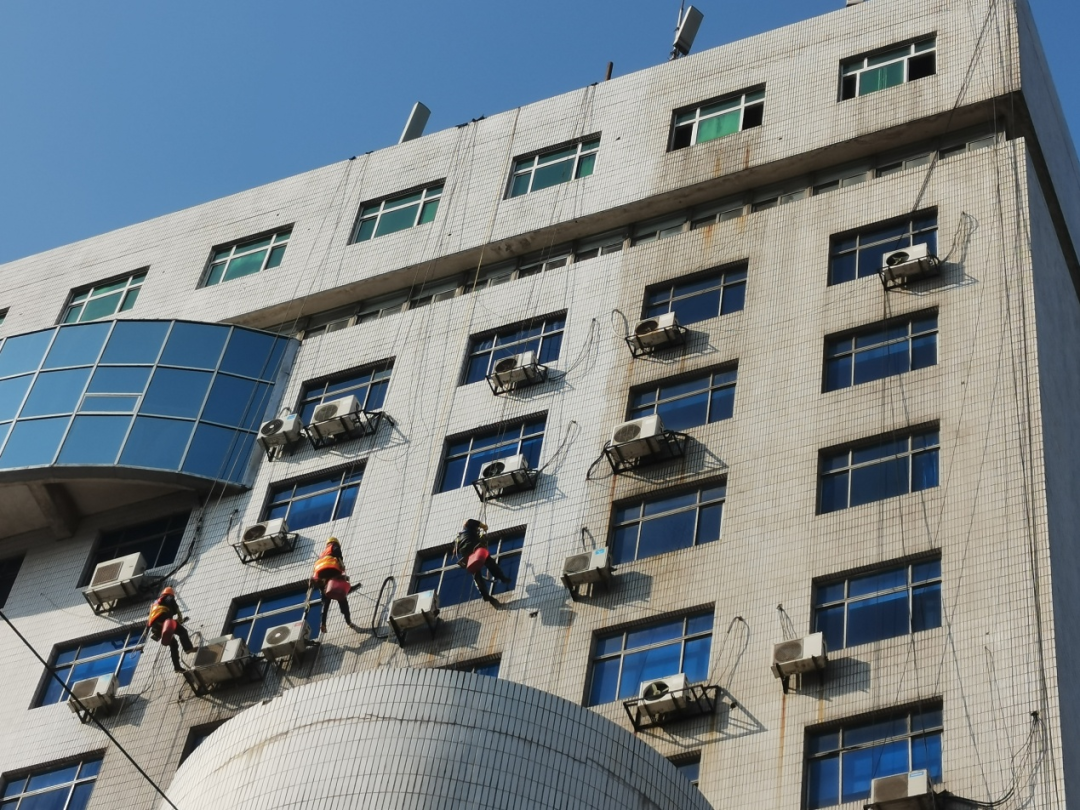 近日,在保证作业安全的前提下,江阴“蜘蛛人”对建筑物外立面进行高空清洗作业。工作人员频繁地“飞行”在光滑的建筑物外立面上,喷水、软化、刷洗……一整套标准化作业流程之后,建筑物外立面焕然一新。