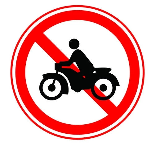 严禁驾驶摩托车违反禁令标志指示通行、不按规定车道行驶;