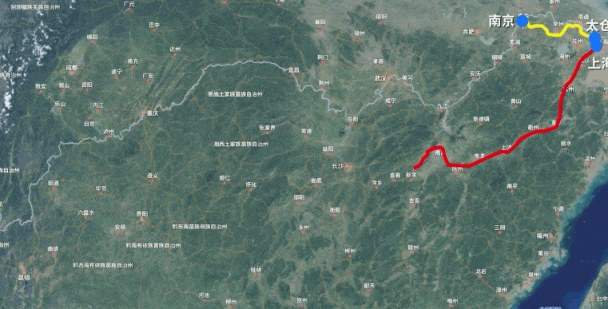 往西经南京南站沿宁蓉铁路能够到达武汉、重庆、成都。