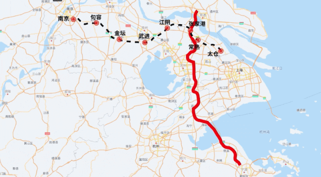 毗邻江阴站的张家港站还和去年开工建设的通苏嘉甬高铁交汇,往北可达南通,往南可达苏州、嘉兴、宁波。