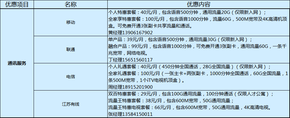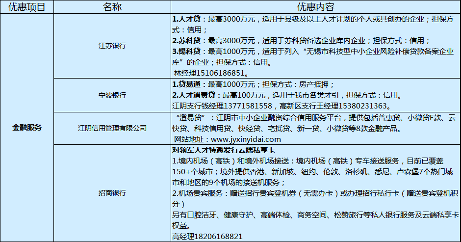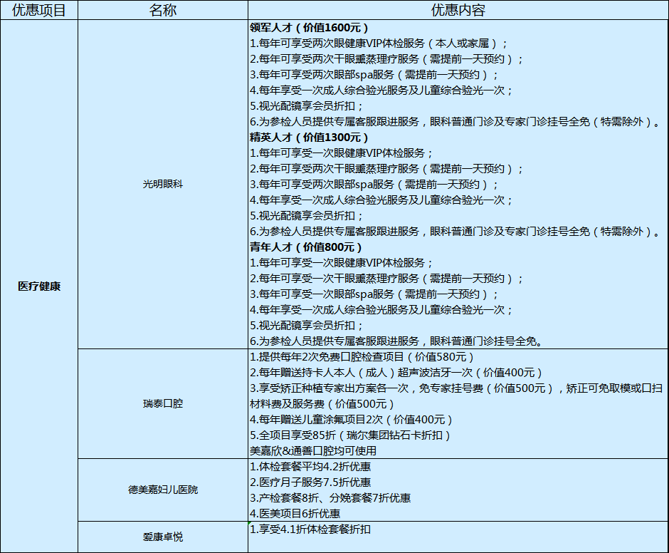 人才礼遇卡六大服务功能