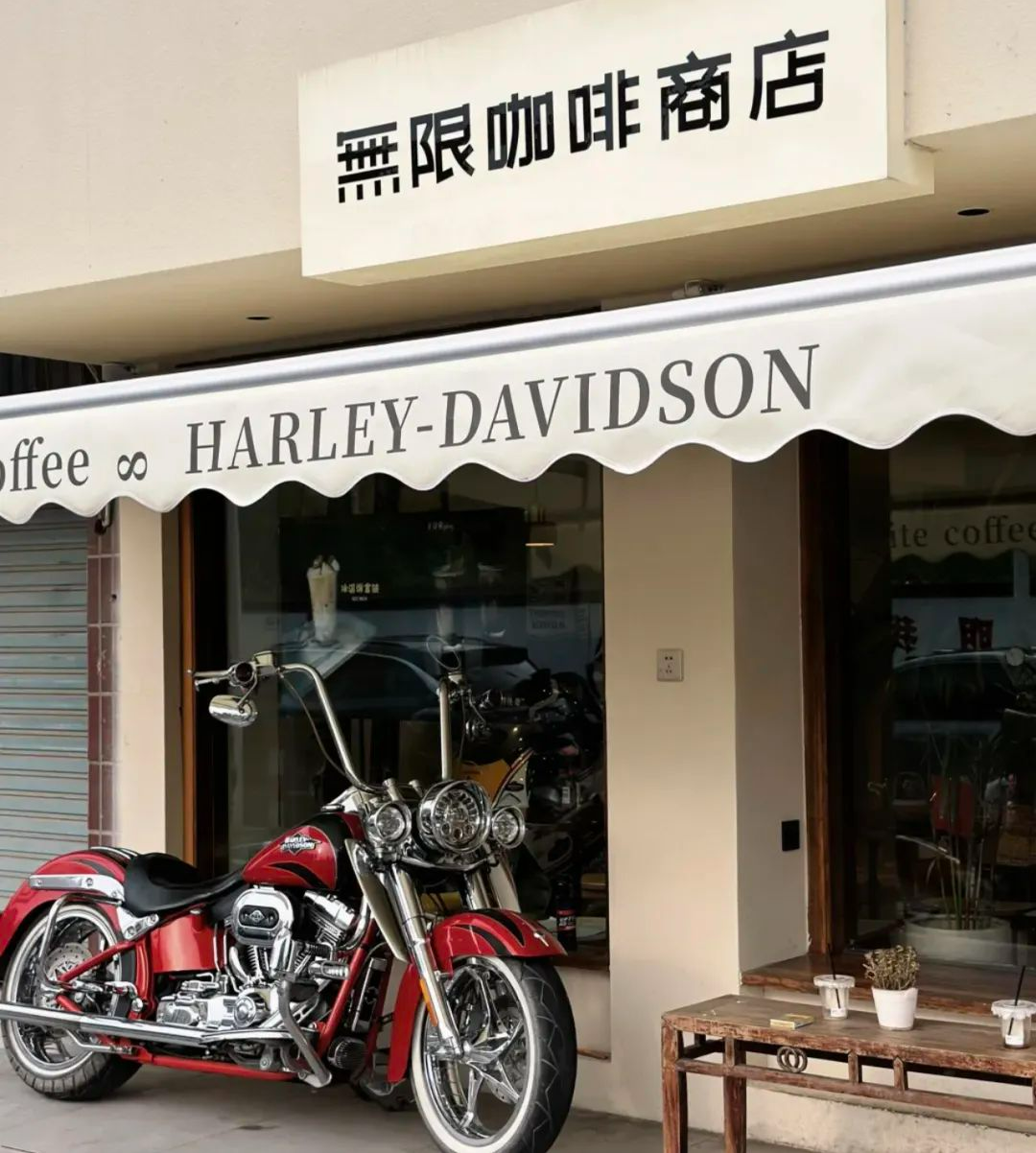 运河边上还藏着另一家有个性的无限咖啡商店,小店很有调性,很出片。机车风格的咖啡店,复古又时髦。应季特调咖啡很有自我风格,老板娘特制甜品颜值也超高。