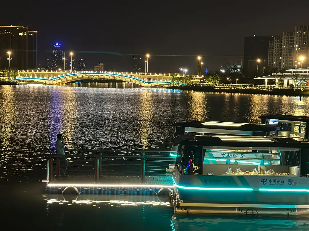 夜幕下的运河流光溢彩,运河水上观光将步入“绿色畅游”时代,5G智能游船现代科技感十足!(目前试运营)