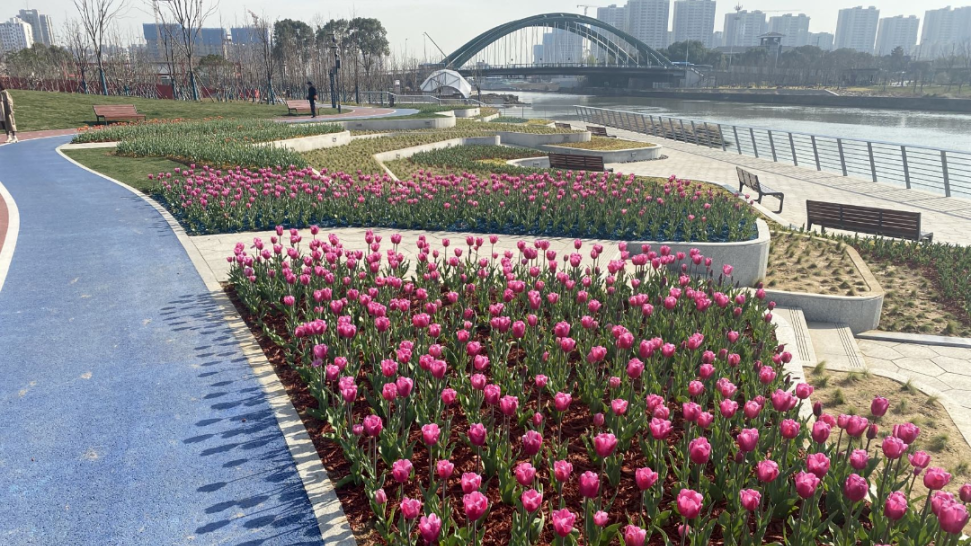 锡澄运河公园三期北起杏春桥,南至芙蓉大道,西至通江路,东至梅园路。三期公园是花的海洋,四季更迭,花语交替,这里也是市民活动最为热闹的一片绿地,这里的日与夜都分外美丽。