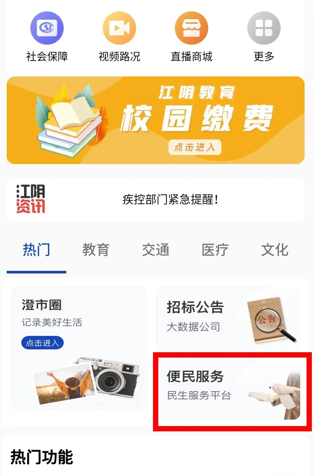 市民只要登陆“最江阴”APP点击便民服务平台就可以方便快捷地查找到相应服务